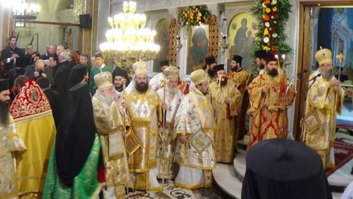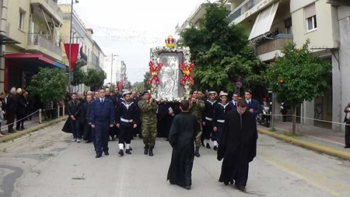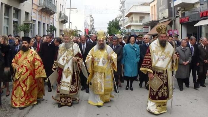 Μεγάλη η πομπή που σχηματίστηκε με συμμετοχή σχολείων, προσκόπων, μπάντες από Αστυνομία, Πυροσβεστική, Δήμου αλλά και του Μουσικού σχολείου και χιλιάδων πιστών. Δεν υπήρξε κυβερνητική εκπροσώπηση, ενώ παρέστη ο Πρόεδρος της Ενωσης Κεντρώων Βασίλης Λεβέντης και η βουλευτής Ραχήλ Μακρή.