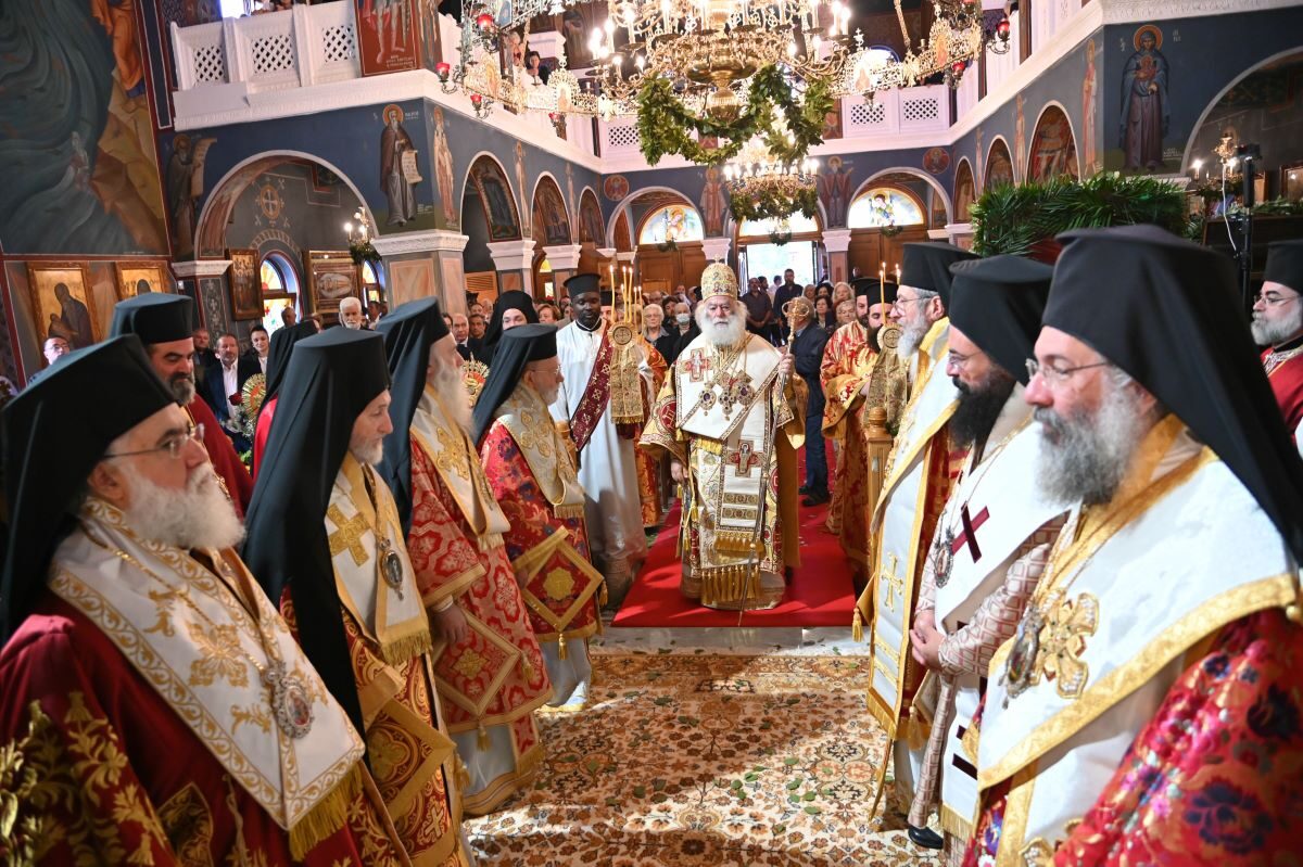 Με τον Μακαριώτατο συνιερούργησαν ο Σεβ. Μητροπολίτης Ανέων κ. Μακάριος, Εκπρόσωπος του Παναγιωτάτου Οικουμενικού Πατριάρχου κ.κ. ΒΑΡΘΟΛΟΜΑΙΟΥ, ο Θεοφ. Επίσκοπος Θεσπιών κ. Παύλος, Εκπρόσωπος του Μακαριωτάτου Αρχιεπισκόπου Αθηνών και πάσης Ελλάδος κ.κ. ΙΕΡΩΝΥΜΟΥ, ο Σεβ. Μητροπολίτης Προικοννήσου κ. Ιωσήφ, ο Σεβ. Μητροπολίτης Μπραζαβίλ και Γκαμπόν κ. Θεόδωρος, ο Σεβ. Μητροπολίτης Πέτρας και Χερρονήσου κ. Γεράσιμος, ο Θεοφ. Επίσκοπος Αμορίου κ. Νικηφόρος, Ηγούμενος της Ιεράς Πατριαρχικής και Σταυροπηγιακής Μονής Βλατάδων, ο Θεοφ. Επίσκοπος Κνωσού κ. Μεθόδιος και ο Σεβ. Ποιμενάρχης, Μητροπολίτης Ρεθύμνης και Αυλοποτάμου κ. Πρόδρομος.