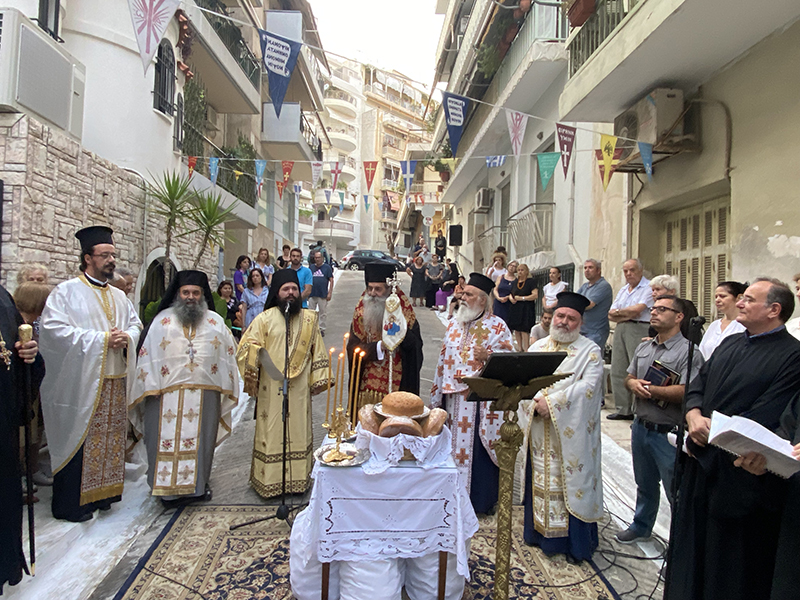 Απευθυνόμενος στους πιστούς που συμμετείχαν για να τιμήσουν την μνήμη της Αγίας, κατά την διάρκεια του Μεγάλου Εσπερινού, ο Σεβασμιώτατος, έκανε αρχικά μνεία στους μακαριστούς κτήτορες, που είχαν την θεία έμπνευση, μέσα «στην χορεία των πολυκατοικιών, να πυργωθεί ένας τόπος λατρείας και μία πύλη του ουρανού».