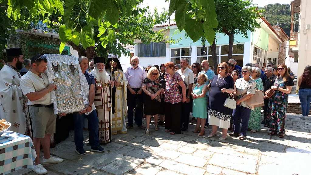 Τὸ ἑσπέρας, ὁ Σεβασμιώτατος Ποιμενάρχης μας μετέβη στὴν Ἱερὰ Μονὴ Ἁγίας Τριάδος Μυτιληνιῶν (1824), ὅπου προέστη τοῦ πανηγυρικοῦ Ἑσπερινοῦ. Λόγω τῶν σοβαρῶν ζημιῶν ποὺ ὑπέστη ἡ Ἱερά Μονή ἀπὸ τὸν σεισμὸ τοῦ 2020, ὁ Ἑσπερινὸς τελέσθηκε ὑπαιθρίως, μὲ τήν συμμετοχὴ πολλῶν προσκυνητῶν.