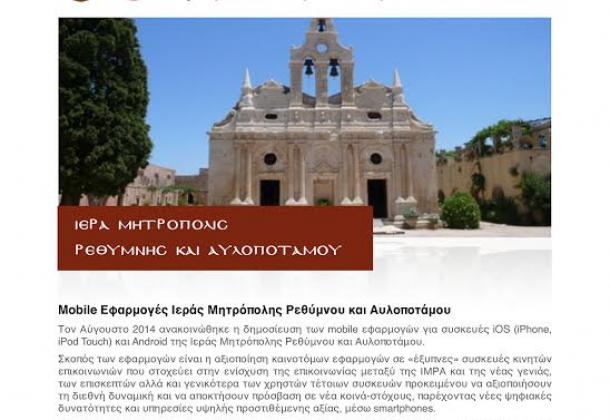 Μέσω των smartphones τους μπορούν πλέον οι πιστοί να περιηγηθούν στον ιστότοπο της ιεράς Μητρόπολης Ρεθύμνης, καθώς πρόσφατα δημιουργήθηκε εφαρμογή η οποία είναι ήδη διαθέσιμη δωρεάν στα ηλεκτρονικά καταστήματα Apple Store και Google Play.