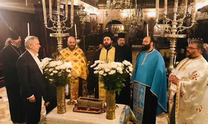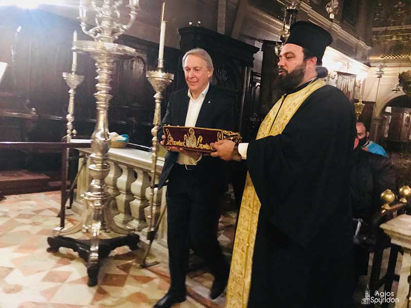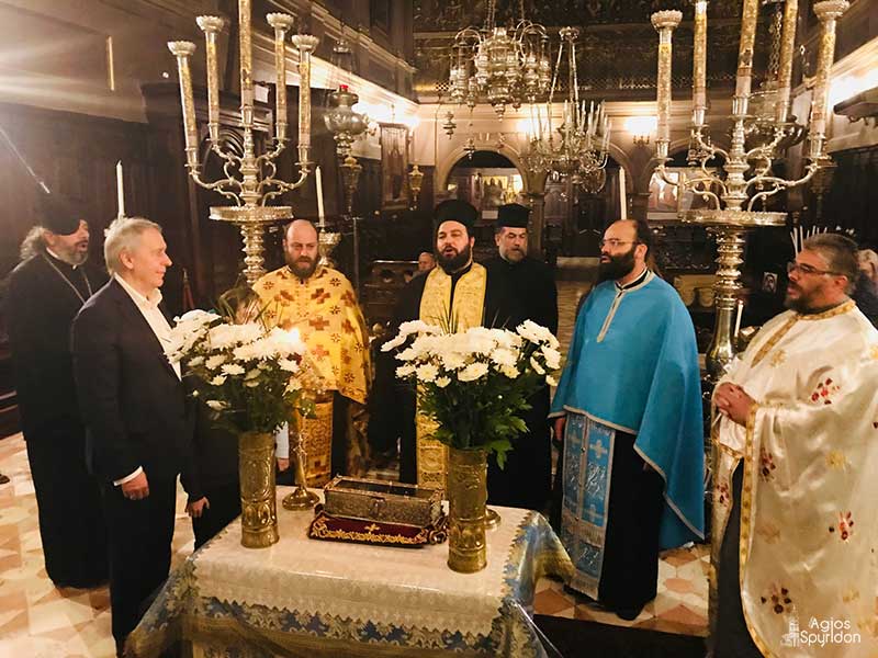 Το ιερό λείψανο του Αγίου Σπυριδώνος μετέφερε στο Ιερό Προσκύνημα του Αγίου ο Πανοσιολ. Αρχιμ. Ιουστίνος Κωνσταντάς, Πρωτοσύγκελλος της Ι.Μ. Κερκύρας.
