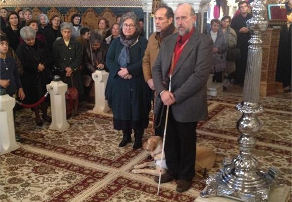Η Μελίτα, το ειδικά εκπαιδευμένο λαμπραντόρ, συνόδευε ένα τυφλό που ήρθε να εκκλησιαστεί. Καθ’ όλη τη διάρκεια της Θείας Λειτουργίας, καθόταν δίπλα στο τυφλό συνοδό της. Οταν ολοκληρώθηκε η Θεία Λειτουργία, η Μελίτα, αφού πήρε εντολή από τον συνοδό της, τον οδήγησε έκτος του ναού.