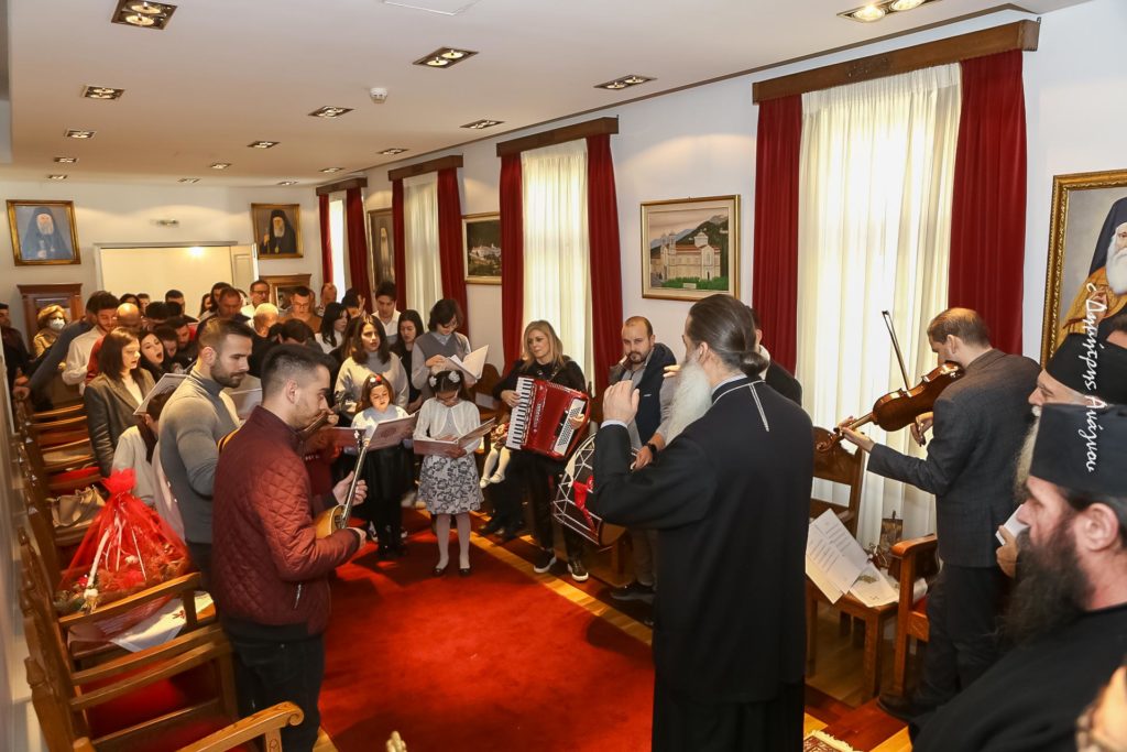 Ιερείς, μοναχοί και μοναχές, τοπικοί φορείς, εκπρόσωποι των Ενόπλων Δυνάμεων και των Σωμάτων Ασφαλείας, μαθητές και μαθήτριες Σχολείων, Πολιτιστικοί Σύλλογοι, εκατοντάδες παιδιά ευχήθηκαν στον Σεβασμιώτατο Καλά Χριστούγεννα έλαβαν την ευχή του και γεύθηκαν την αγάπη του και το Χριστουγεννιάτικο μποναμά, καθώς και άλλα δώρα.