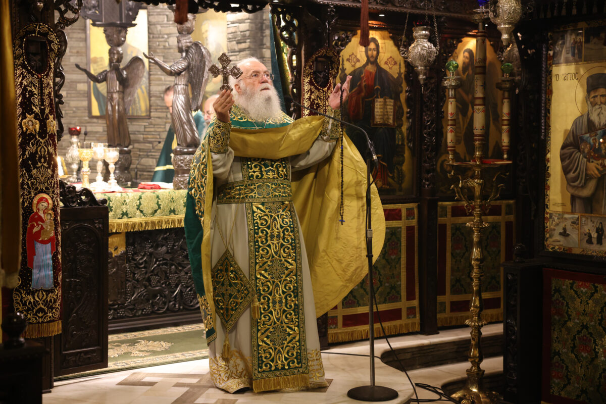 Στην πανηγυρική ακολουθία του Εσπερινού χοροστάτησε ο Καθηγούμενος της Ιεράς Μονής και Πρωτοσύγκελλος της Ι.Μ. Φωκίδος Γέροντας Νεκτάριος Μουλατσιώτης, και πρώτος μεταξύ των ιερέων προεξήρχε ο Πανοσιολογιώτατος Αρχιμναδρίτης π. Μελέτιος Μαραγκός Γέροντας του Κελλιού Αγίου Αθανασίου του Αθωνίτου που ανήκει στην Ιερά Μονή Ξενοφώντος Αγίου Όρους.