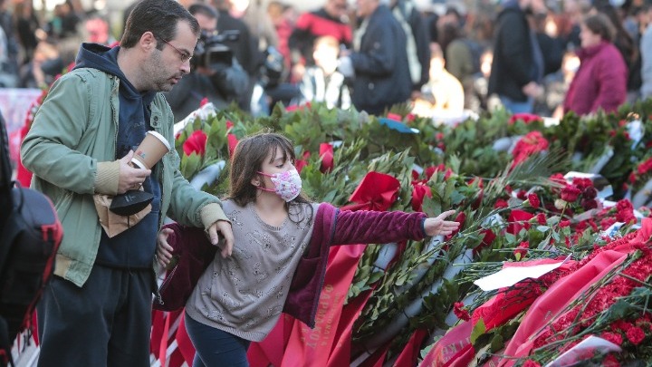 «Πρέπει να μαθαίνουν οι νέοι, να μην ξεχνάμε εμείς οι μεγαλύτεροι ότι κάποια παιδιά έδωσαν τη ζωή τους για να υπερασπιστούν τη Δημοκρατία», σημείωσε ένας πατέρας που ήρθε με την πεντάχρονη κόρη του.