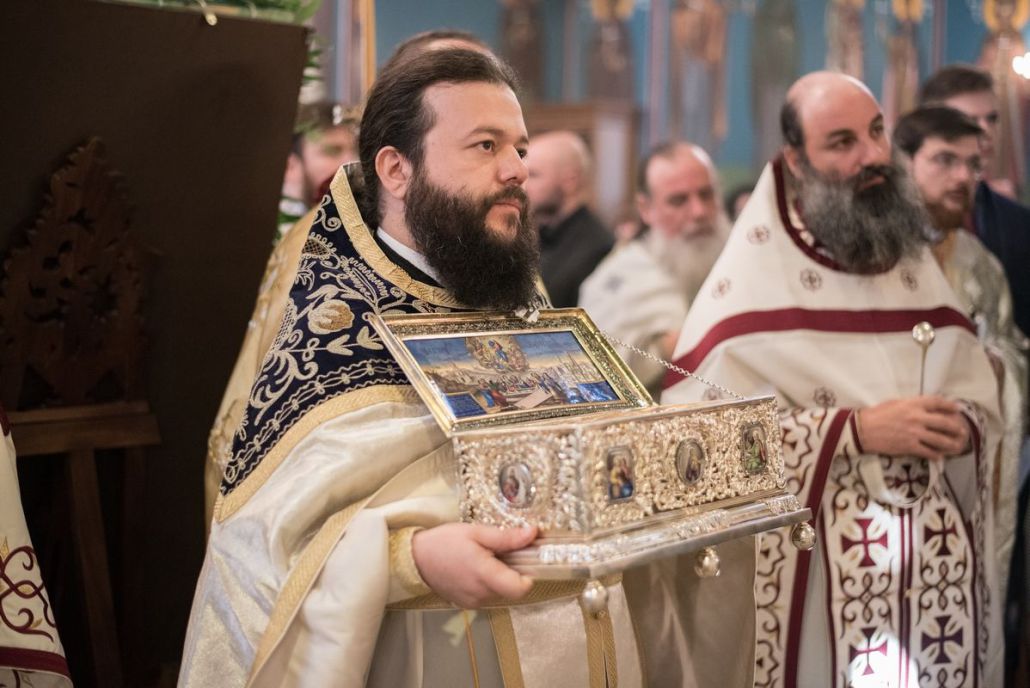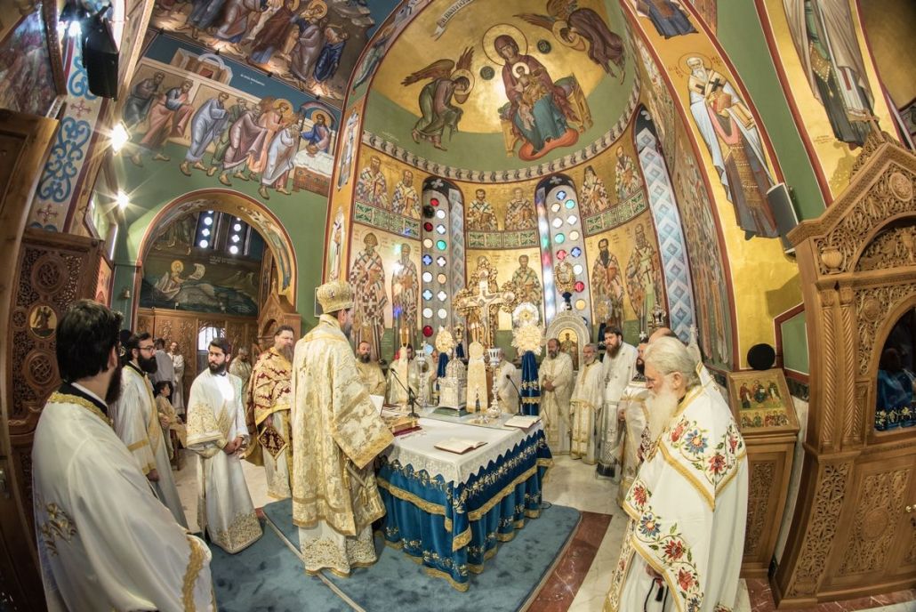 Της Θείας Λειτουργίας προεξήρχε ο Σεβασμιώτατος Μητροπολίτης Νέας Ιωνίας και Φιλαδελφείας κ. Γαβριήλ, ο οποίος χοροστάτησε στην Ακολουθία του Όρθρου, πλαισιωμένος από τον Πανοσιολογιώτατο Καθηγούμενο της Ιεράς Μεγίστης Μονής Βατοπαιδίου Γέροντα Εφραίμ και πολλών Κληρικών και άλλων Μητροπόλεων.