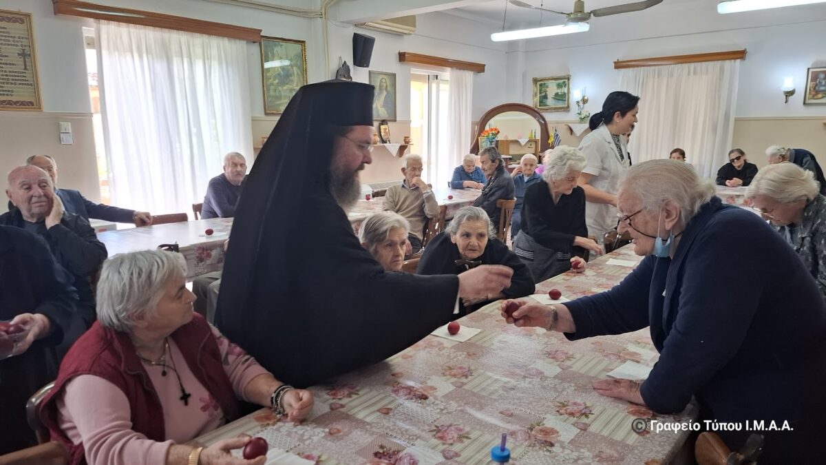 Την Τετάρτη της Διακαινησίμου Εβδομάδος, 23 Απριλίου 2025 επισκέφθηκε το Γηροκομείο της Χριστιανικής Ενώσεως Αγρινίου, όπου τον υποδέχθηκαν τα μέλη του Δ.Σ. του Ιδρύματος και ο Ιεροκήρυξ Αρχιμ. Λαυρέντιος Καρανάσιος, Πνευματικός Υπεύθυνος της Χ.Ε.Α. Ο Σεβασμιώτατος μίλησε πατρικά και επίκαιρα στους τροφίμους, τσούγκρισε πασχαλινά αυγά με όλους και ευχήθηκε χρόνια πολλά.
