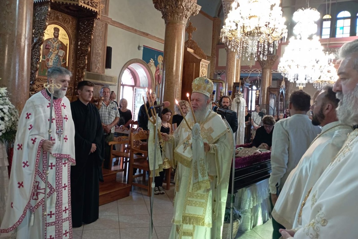 Μετά το τέλος της Θείας Λειτουργίας οι Αρχιερείς και οι συλλειτουργοί τους τέλεσαν το τεσσαρακονθήμερο μνημόσυνο της μακαριστής Αικατερίνης, μητέρας της Δημάρχου Χαλκιδέων κ. Έλενας Βάκα και άλλων κεκοιμημένων Ενοριτών.