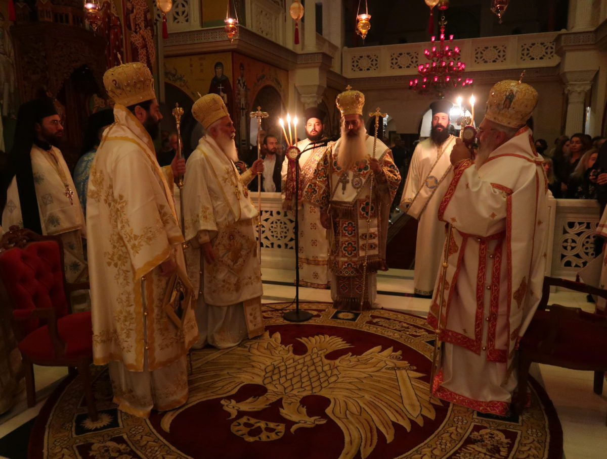 Στην Ιερά Αγρυπνία με την κανονική άδεια και ευλογία του Μακαριωτάτου Αρχιεπισκόπου Αθηνών και πάσης Ελλάδος κ.κ. Ιερωνύμου του Β’ συλλειτούργησαν οι Σεβασμιώτατοι Μητροπολίτες Φθιώτιδος κ. Συμεών, Λήμνου και Αγίου Ευστρατίου κ. Ιερόθεος, Λαγκαδά, Λητής και Ρεντίνης κ. Πλάτων και ο Θεοφιλέστατος Επίσκοπος Ευρίπου κ. Χρυσόστομος, ενώ παρέστησαν συνευχόμενοι οι Σεβασμιώτατοι Μητροπολίτες, Πειραιώς και Φαλήρου κ. Σεραφείμ και Καστορίας κ. Καλλίνικος, καθώς και οι Θεοφιλέστατοι Εψηφισμένοι Επίσκοποι, Ταλαντίου κ. Επιφάνιος και Θεσπιών κ. Πάυλος.