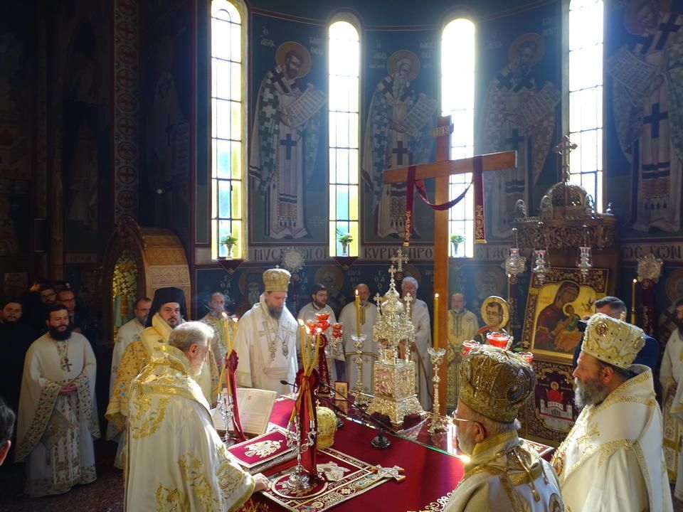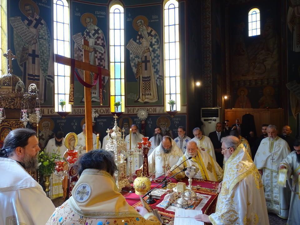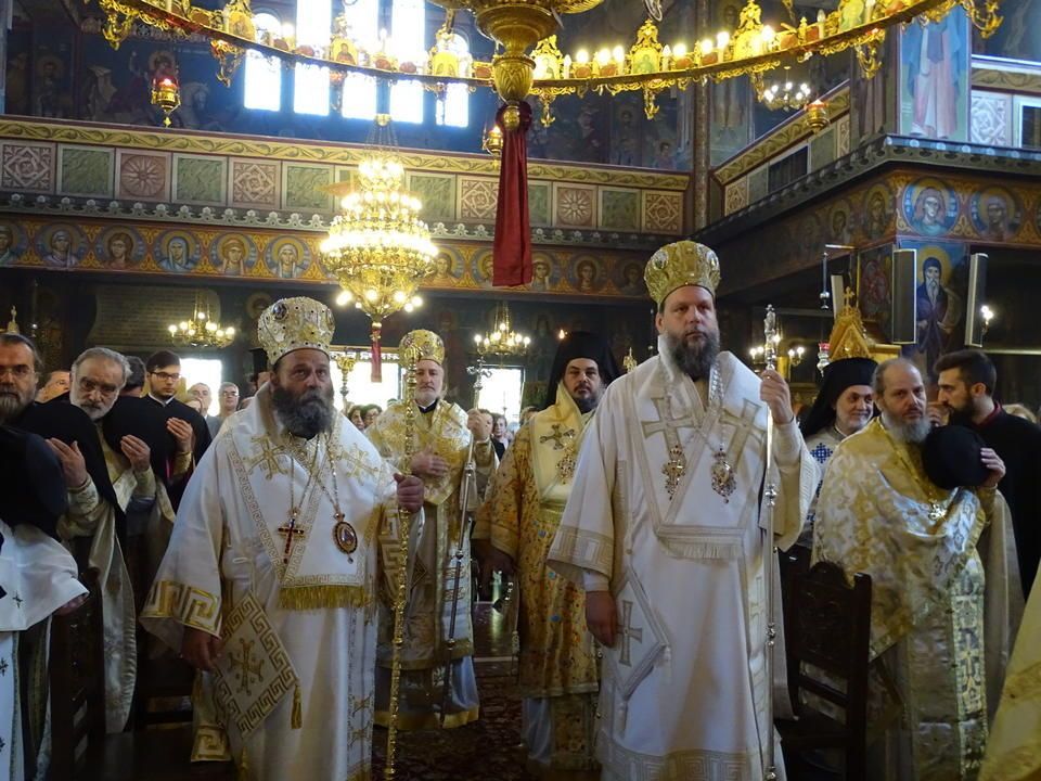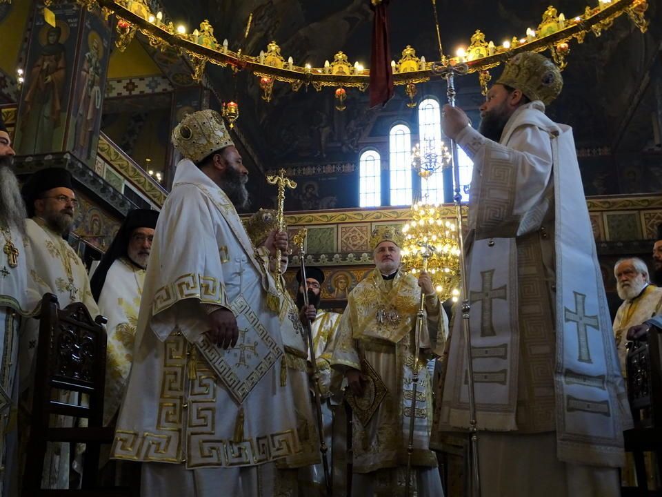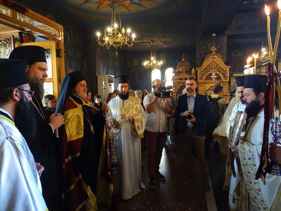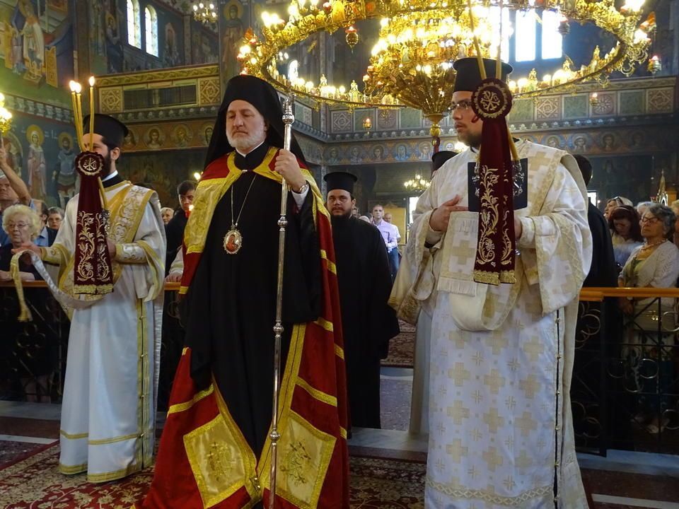 Ο Σεβασμιώτατος Αρχιεπίσκοπος Αμερικής χοροστάτησε στην Ακολουθία του Όρθρου και στη συνέχεια προεξήρχε της Πανηγυρικής Πολυαρχιερατικής Θείας Λειτουργίας, στην οποία συλλειτούργησαν οι Σεβ. Μητροπολίτες Ανέων κ. Μακάριος, Σιγκαπούρης κ. Κωνσταντίνος, Ιωαννίνων κ. Μάξιμος, Νέας Ιωνίας και Φιλαδελφείας κ. Γαβριήλ καθώς και πολλοί κληρικοί ανάμεσά τους οι Πρωτοπρεσβύτεροι του Οικουμενικού Θρόνου π. Αλέξανδρος Καρλούτσος και π. Θωμάς Συνοδινός, Πρωθιερέας του Μητροπολιτικού Ναού Αθηνών.
