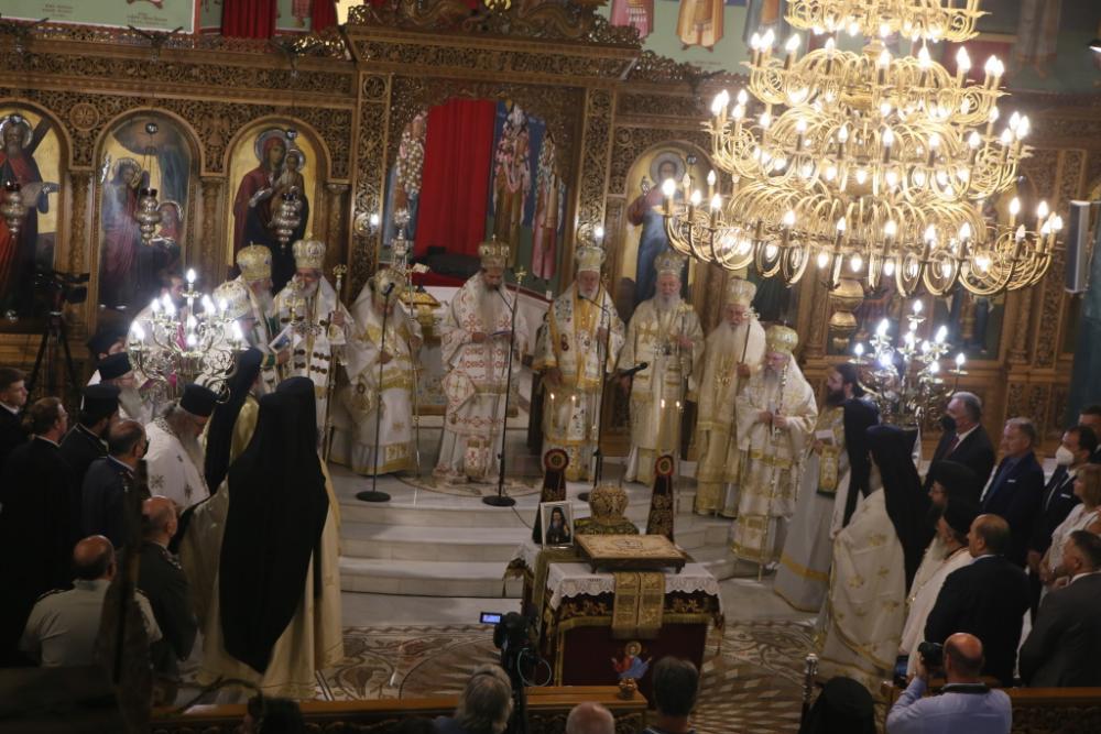 Στον Όρθρο χοροστάτησε ο Μητροπολίτης Σιδηροκάστρου κ. Μακάριος, ενώ στο Πολυαρχιερατικό Συλλείτουργο προηξήρχε ο Επίσκοπος της ιδιαιτέρας πατρίδας του μακαριστού, της Ιεράς Νήσου της Μεγαλόχαρης, Μητροπολίτης Σύρου, Τήνου και λοιπών Νήσων κ. Δωρόθεος, τη συμμετοχή των Μητροπολιτών, Χαλκίδος, Ιστιαίας και Βορείων Σποράδων κ. Χρυσοστόμου, Εδέσσης, Πέλλης και Αλμωπίας κ. Ιωήλ, Αλεξανδρουπόλεως κ. Ανθίμου, Θηβών, Λεβαδείας και Αυλίδος κ. Γεωργίου, Λαρίσης και Τυρνάβου κ. Ιερωνύμου, του Θεοφιλεστάτου Επισκόπου Ανδρούσης κ. Κωνσταντίου, καθώς και του κυριάρχου Μητροπολίτου Φθιώτιδος κ. Συμεών.