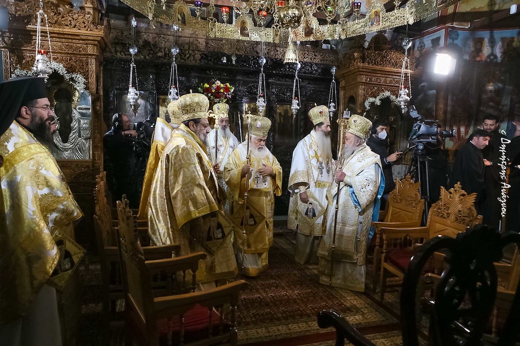Στο Πανηγυρικό Όρθρο χοροστάτησε ο Σεβασμιώτατος Μητροπολίτης Αλεξανδρουπόλεως κ. Άνθιμος. Ακολούθησε Πολυαρχιερατικό Συλλείτουργο προεξάρχοντος του Σεβασμιωτάτου Μητροπολίτου Λαοδικείας κ. Θεοδωρήτου και συνιερουργούντων των Σεβασμιωτάτων Μητροπολιτών, Εδέσσης, Πέλλης και Αλμωπίας κ. Ιωήλ, Αξεξανδρουπόλεως κ. Ανθίμου, Νεαπόλεως και Σταυρουπόλεως κ. Βαρνάβα, Μεσσηνίας κ. Χρυσοστόμου, Γρεβενών κ. Δαυίδ, Λήμνου και Αγίου Ευστρατίου κ. Ιεροθέου και του οικείου Ποιμενάρχου, Σεβασμιωτάτου Μητροπολίτου Φθιώτιδος κ. Συμεών.