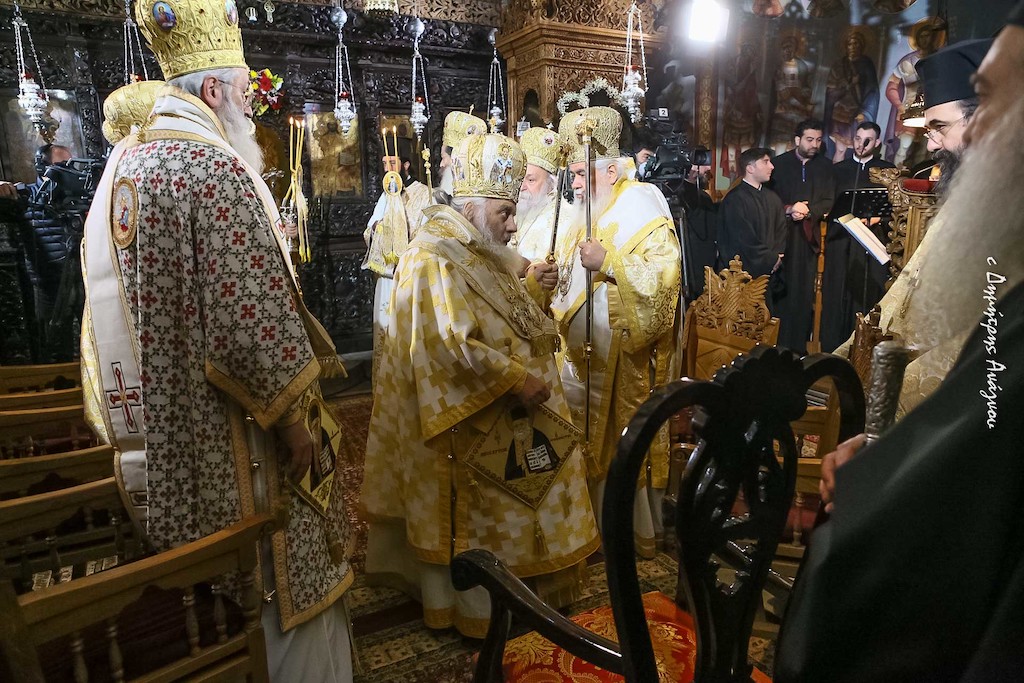 «Καθώς ο Μακαριώτατος συμπληρώνει δεκαπέντε (15) χρόνια στο πηδάλιο της Εκκλησίας, οι Σεβασμιώτατοι αδελφοί μου και ο ευσεβής λαός του Θεού τον ευχαριστεί για τη σιωπηλή, αθόρυβη αλλά ουσιαστική διακονία και τον αγώνα του να κατανοήσουμε ότι αυτός ο τύπος ανθρώπου, του Ρωμιού, που αγαπά τον Θεό και την πατρίδα, σε έναν κόσμο που καταρρέει με εμφανή τα σημάδια της παρακμής, είναι η μόνη μας ελπίδα. Επειδή την Ιστορία την κινεί η πίστη, που μετακινεί βουνά, «και τα βουνά σηκώνουν οι λαοί στον ώμο τους». Είναι η πίστη που κτίζει Παρθενώνες. Είναι η πίστη που κτίζει την Αγιά Σοφιά, την Παναγία Σουμελά, το Άγιον Όρος, τη Μονή Αγάθωνος. Είναι η πίστη που χαρίζει και φανερώνει Αγίους και φωτίζει τον κόσμο.