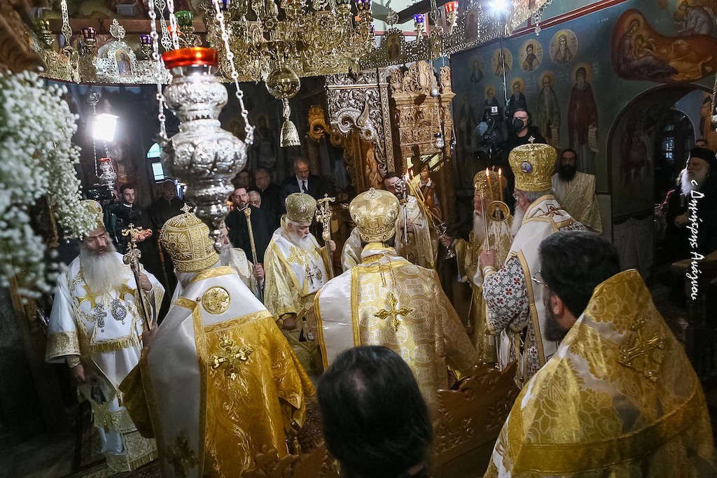 Λαμπρό Πολυαρχιερατικό Συλλείτουργο τελέσθηκε εχθές, Κυριακή 22 Ιανουαρίου 2023 στο Καθολικό της Ιεράς Μονής Κοιμήσεως της Θεοτόκου Οσίου Αγάθωνος, για τον πρώτο επίσημο εορτασμό της ιεράς μνήμης του Οσίου και Θεοφόρου Πατρός ημών Βησσαρίωνος του Αγαθωνίτου, του Ελεήμονος και Πνευματικού.