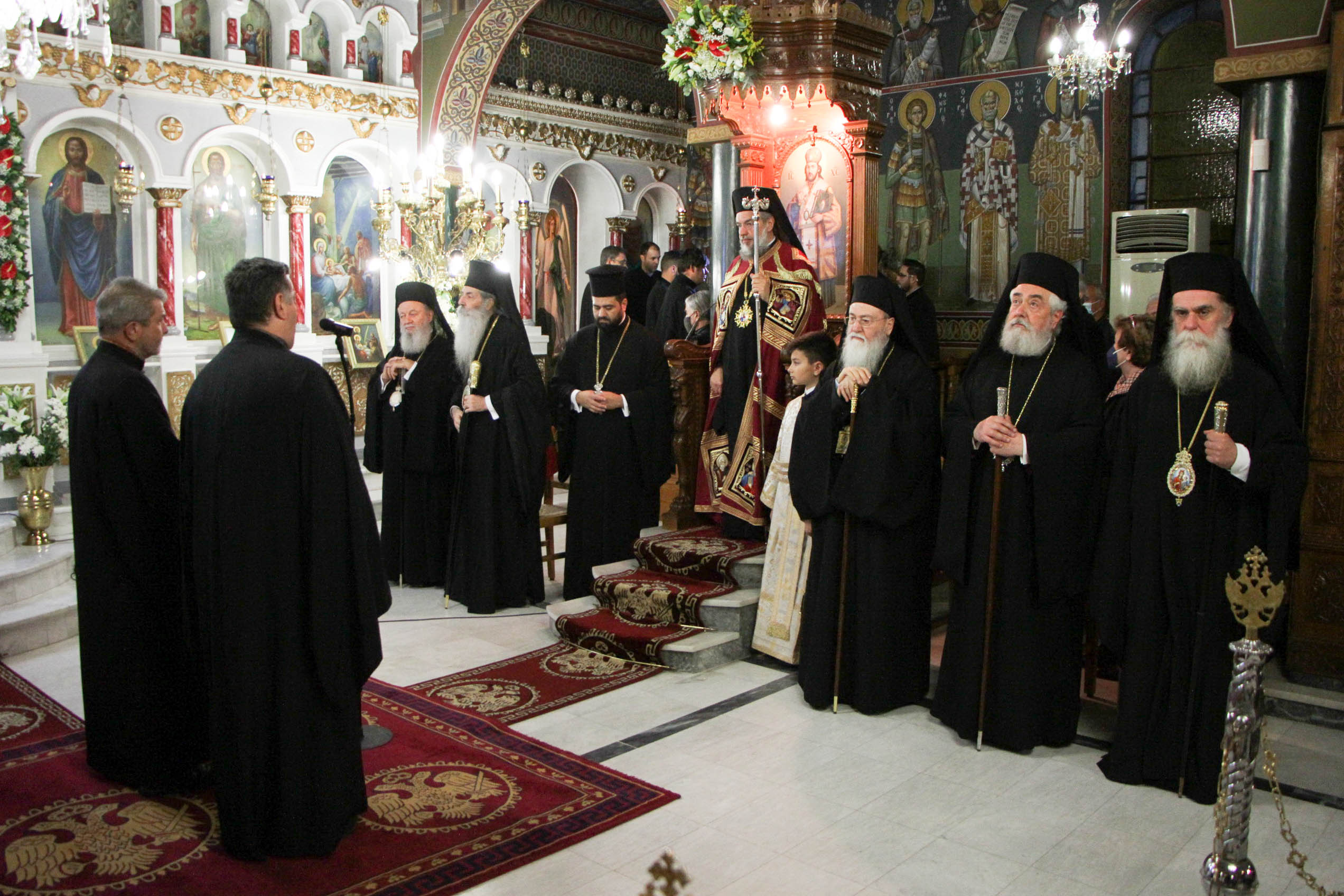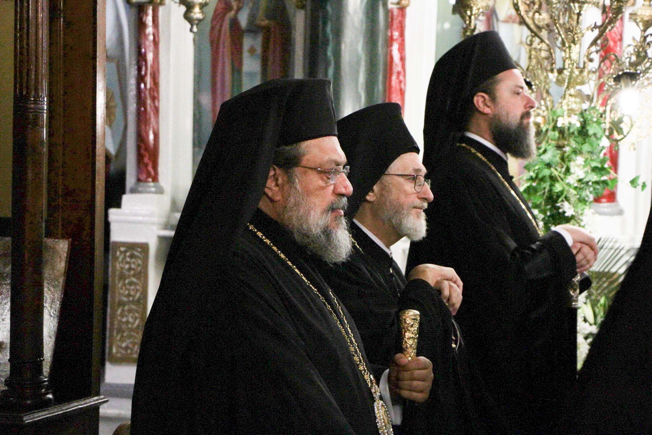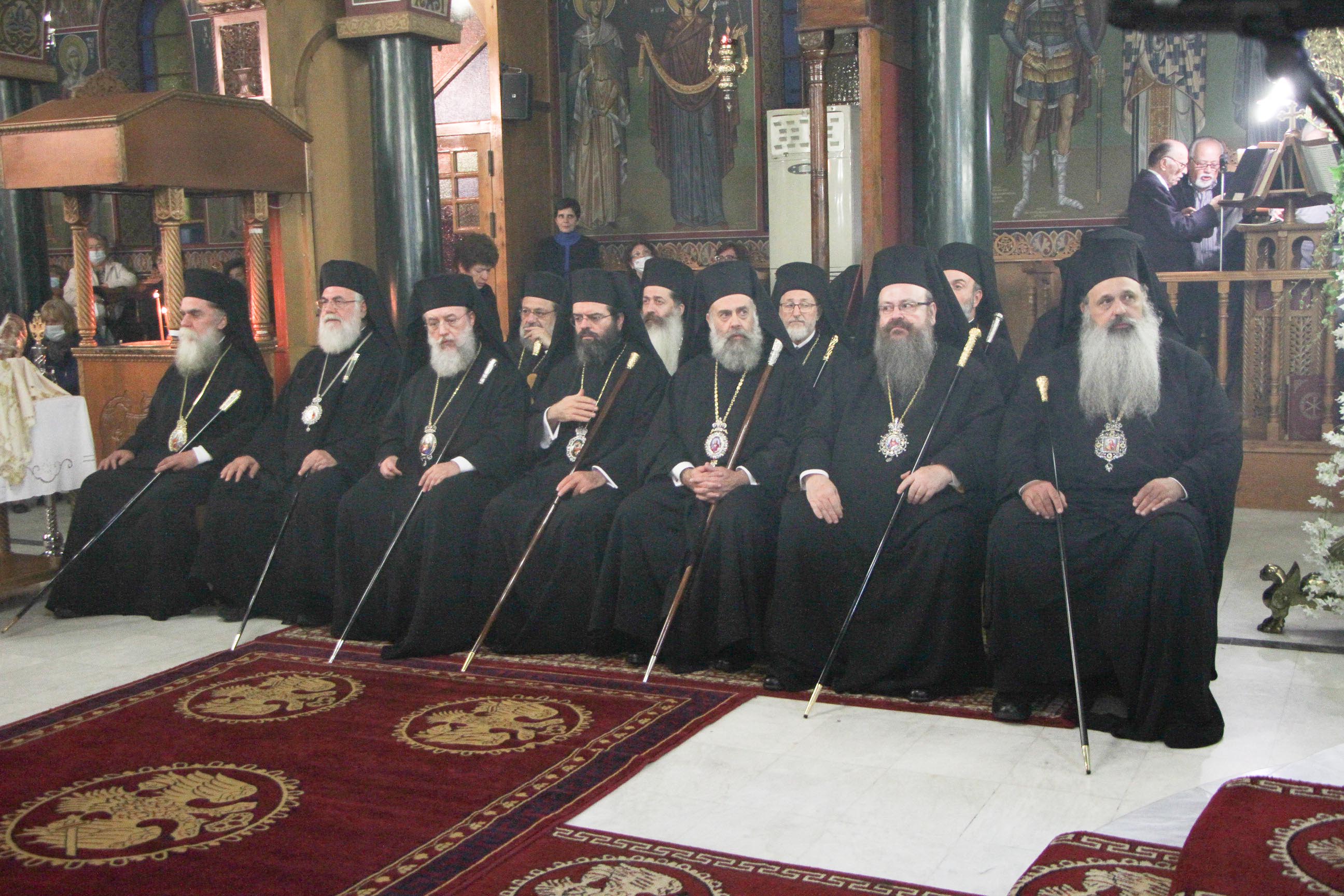 Στην Ακολουθία χοροστάτησε ο Σεβ. Μητροπολίτης Γόρτυνος κ. Νικηφόρος, συγχοροστατούντων των Σεβ. Μητροπολιτών Σπάρτης κ. Ευσταθίου, Πειραιώς κ. Σεραφείμ, Χαλκίδος κ. Χρυσοστόμου, Κορίνθου κ. Διονυσίου, Θηβών κ. Γεωργίου, Φωκίδος κ. Θεοκτίστου, Άρτης κ. Καλλινίκου, Ιλίου κ. Αθηναγόρου, Κηφισίας κ. Κυρίλλου, Μαρωνείας κ. Παντελεήμονος, Θεσσαλιώτιδος κ. Τιμοθέου, Μεγάρων κ. Κωνσταντίνου, Σταγών κ. Θεοκλήτου,Φθιώτιδος κ. Συμεών, Περιστερίου Κ. Γρηγορίου, Θήρας κ. Αμφιλοχίου, των Θεοφίλ. Επισκόπων Αμορίου κ. Νικηφόρου και Ωρεών κ. Φιλοθέου και του Επιχωρίου Μητροπολίτου Μεσσηνίας κ. Χρυσοστόμου.