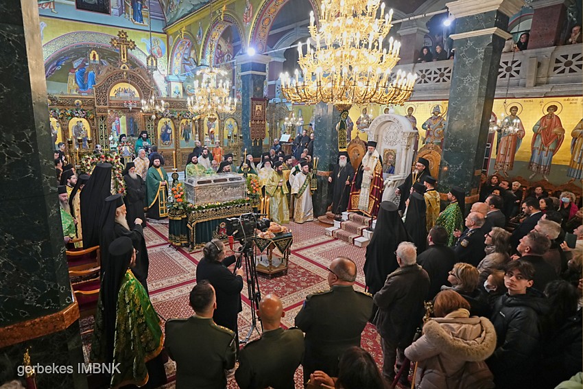 Συνεορταστές καί συμπανηγυριστές κατά τήν ἱερά καί εὐκλεῆ αὐτή ἑσπέρα τρεῖς προσφιλεῖς καί πολυσέβαστοι Ἀρχιερεῖς, ὁ Σεβασμιώτατος Μητροπολίτης Ἄρτης κ. Καλλίνικος, ὁ ὁποῖος μέ πολλή χαρά καί μέ πολλή ἀγάπη ἀνταποκρίνεται πάντοτε στίς ταπεινές προσκλήσεις μας καί θά προεξάρχει αὔριο τῆς πανηγυρικῆς θείας Λειτουργίας, καί δύο νεώτεροι ἀδελφοί ἀρχιερεῖς καί θά μᾶς ὁμιλήσει, ὁ Σεβασμιώτατος Μητροπολίτης Παραμυθίας, Φιλιατῶν, Γηρομερίου καί Πάργας κ. Σεραπίων, ὁ ὁποῖος ἔρχεται γιά πρώτη φορά στήν Ἱερά μας Μητρόπολη, καί ὁ Θεοφιλέστατος Ἐπίσκοπος Τανάγρας κ. Ἀπόστολος, Διευθυντής τοῦ Γραφείου τῆς Ἐκκλησίας τῆς Ἑλλάδος στήν Εὐρωπαϊκή Ἕνωση, ὁ ὁποῖος χοροστατεῖ στόν Ἑσπερινό καί θά μᾶς ὁμιλήσει στή συνέχεια.