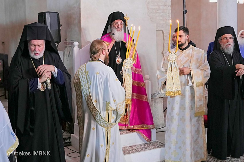 Στον Πανηγυρικό Εσπερινό χοροστάτησε ο Θεοφιλέστατος Επίσκοπος Καρπασίας κ. Χριστοφόρος, εκπρόσωπος της Εκκλησίας της Κύπρου, ενώ έλαβαν μέρος οι εκπρόσωποι των Ορθοδόξων Πατριαρχείων και Αυτοκεφάλων Εκκλησιών: ο Σεβ. Μητροπολίτης Βελγίου κ. Αθηναγόρας, εκπρόσωπος της ΑΘΠ του Οικουμενικού Πατριάρχου κ.κ. Βαρθολομαίου, ο Θεοφ. Επίσκοπος Αρούσας και Κεντρικής Τανζανίας κ. Αγαθόνικος, εκπρόσωπος του Πατριαρχείου Αλεξανδρείας, ο Σεβ. Αρχιεπίσκοπος Ανθηδώνος κ. Νεκτάριος, εκπρόσωπος του Πατριαρχείου Ιεροσολύμων, ο Έξαρχος του Παναγίου Τάφου Παν. Αρχιμ. κ. Ιερώνυμος, o Θεοφ. Επίσκοπος Λονδίνου, Μ. Βρετανίας και Ιρλανδίας κ. Νεκτάριος, εκπρόσωπος του Πατριαρχείου Σερβίας, ο Θεοφ. Ἐπίσκοπος Κοβάσνα και Χαργκίτα κ. Ανδρέας, εκπρόσωπος του Πατριαρχείου Ρουμανίας, ο Θεοφ. Επίσκοπος Γκλαβινίτσης κ. Μακάριος, εκπρόσωπος του Πατριαρχείου Βουλγαρίας, ο Σεβ. Μητροπολίτης Ζουκδίδι καί Τσαΐσι κ. Γεράσιμος, εκπρόσωπος του Πατριαρχείου Γεωργίας, ο Σεβ. Μητροπολίτης Σισανίου και Σιατίστης κ. Αθανάσιος, εκπρόσωπος της Εκκλησίας της Ελλάδος, ο Παν. Ιερομόναχος κ. Σάββας, εκπρόσωπος της Εκκλησίας της Πολωνίας. ο ΑΙδεσ. Πρωτ. κ. Μιχαήλ, εκπρόσωπος της Εκκλησίας της Αλβανίας, ο Σεβ. Μητροπολίτης Μεσσηνίας κ. Χρυσόστομος και ο Ποιμενάρχης μας Σεβ. Μητροπολίτης Βεροίας, Ναούσης και Καμπανίας κ. Παντελεήμων, ο οποίος κήρυξε και το θείο Λόγο.
