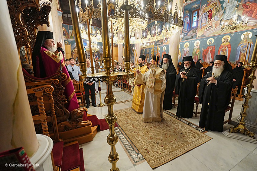 Στον Πολυαρχιερατικό Εσπερινό χοροστάτησε ο Σεβασμιώτατος Μητροπολίτης Νέας Κρήνης και Καλαμαριάς κ. Ιουστίνος και συμμετείχαν οι Σεβασμιώτατοι Μητροπολίτες Γέρων Καισαρείας κ. Θεοφύλακτος, Κίτρους κ. Γεώργιος και ο Ποιμενάρχης μας κ. Παντελεήμων.