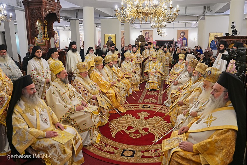 Στον Όρθρο χοροστάτησε ο Σεβασμιώτατος Μητροπολίτης Κερκύρας, Παξών και Διαποντίων Νήσων κ. Νεκτάριος, εκπρόσπωπος του Μακαριωτάτου Αρχιεπισκόπου Αθηνών και πάσης Ελλάδος κ.κ. Ιερωνύμου. Στο πολυαρχιερατικό συλλείτουργο που ακολούθησε προέστη ο Σεβασμιώτατος Μητροπολίτης Σμύρνης κ. Βαρθολομαίος, εκπρόσωπος της Α.Θ.Π. του Οικουμενικού Πατριάρχου κ.κ. Βαρθολομαίου, ο οποίος κήρυξε και το θείο Λόγο. Έλαβαν μέρος o Σεβ. Μητροπολίτης Γερ. Καισαρείας κ. Θεοφύλακτος (εκπρόσωπος του Μακαριωτάτου Πατριάρχου Αλεξανδρείας κ.κ. Θεοδώρου), ο Θεοφ. Επίσκοπος Πράχοβας κ. Τιμόθεος (εκπρόσωπος του Μακαριωτάτου Πατριάρχου Ρουμανίας κ.κ. Δανιήλ) και οι Σεβ. Μητροπολίτες Σύρου κ. Δωρόθεος, Μαρωνείας κ. Παντελεήμων, Κίτρους κ. Γεώργιος, Νέας Κρήνης κ. Ιουστίνος, Τρίκκης κ. Χρυσόστομος, Φιλίππων κ. Στέφανος, Μάνης κ. Χρυσόστομος, Θεσσαλονίκης κ. Φιλόθεος, Βεροίας κ. Παντελεήμων και οι Θεοφιλέστατοι Επίσκοποι Αμφιπόλεως κ. Χριστοφόρος και Δομενίκου κ. Αθηναγόρας, ενώ παρέστησαν συμπροσευχόμενοι ο Σεβ. Μητροπολίτης Λαρίσης κ. Ιερώνυμος, ο Θεοφ. Επίσκοπος Ρηγίου κ. Ειρηναίος και ο Πανοσ. Αρχιμ. κ. Ελισσαίος, Καθηγούμενος της Ιεράς Μονής Σίμωνος Πέτρας, οι οποίοι έλαβαν μέρος στο ετήσιο μνημόσυνο του μακαριστού Αρχιμανδρίτου Παντελεήμονος Κορφιωτάκη, καθηγουμένου και κτήτορος της Ιεράς Μονής Παναγίας Δοβρά, που τελέστηκε στο τέλος της θείας Λειτουργίας. Στο ιερό μνημόσυνο τον θείο Λόγο κήρυξε ο Σεβασμιώτατος Ποιμανάρχης μας κ. Παντελεήμων.