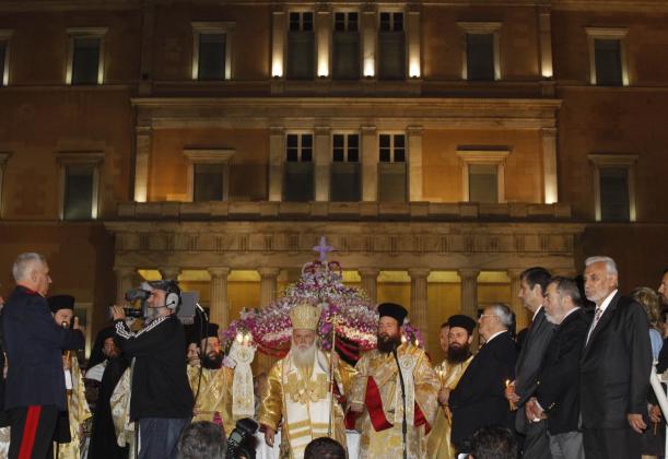 Την αντίδραση μέρους των παρευρισκομένων στο Σύνταγμα για την λιτανεία του Επιταφίου προκάλεσε η παρουσία πολιτικών στην τελετή.