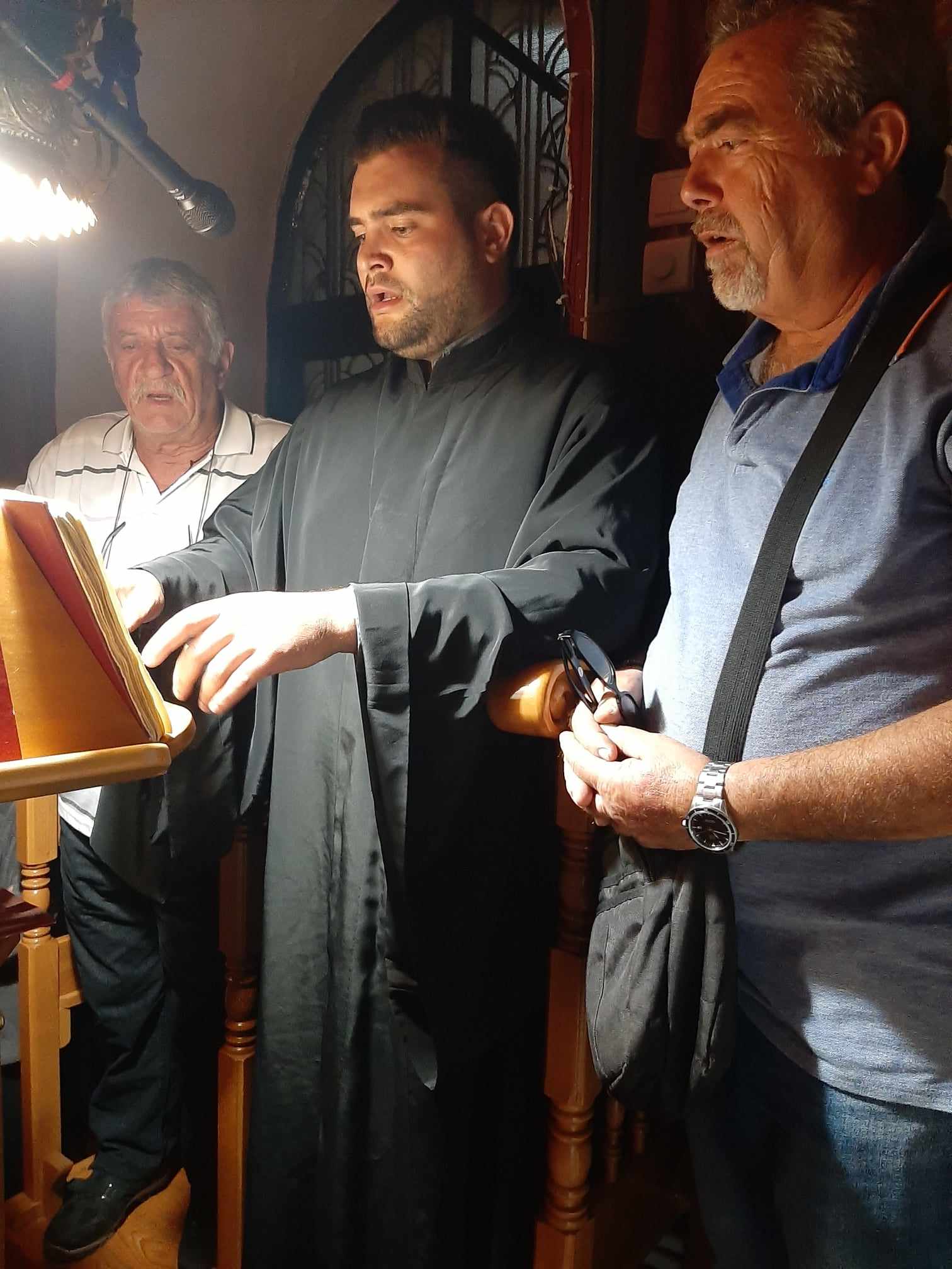 Τους ύμνους στην αγρυπνία απέδωσαν οι Ιεροψάλτες Δημήτριος Πετρογιάννης ιερού ναού Αγίου Νικολάου Ερέτριας και  ο Αναγνώστης Αναστάσιος Ρέτσας ιερού ναού Ευαγγελισμού της Θεοτόκου Περιβολίων.