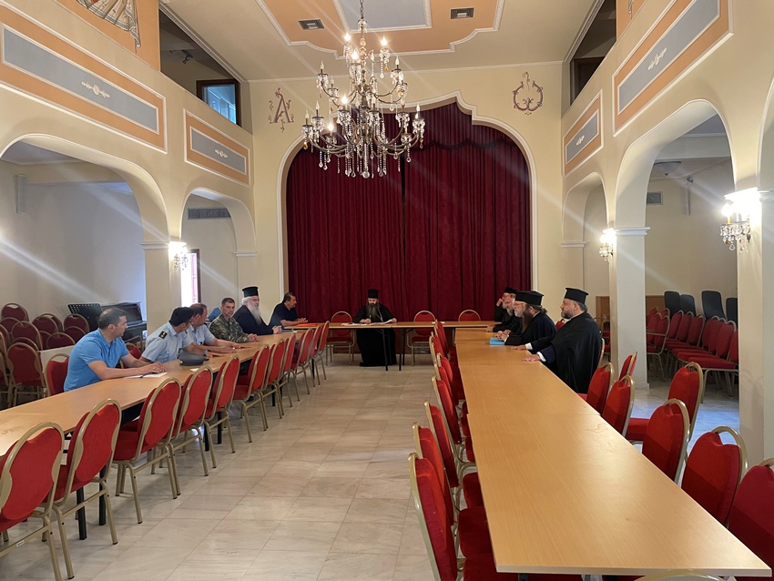Κατά την διάρκεια της συσκέψεως, η οποία πραγματοποιήθηκε με την ευλογία του Σεβασμιωτάτου Ποιμενάρχου μας κ. Διονυσίου, υπό την προεδρία του Πρωτοσυγκέλλου της Ι. Μητροπόλεως μας Θεοφιλεστάτου Επισκόπου Κεγχρεών κ. Αγαπίου, και με την συμμετοχή του Δημάρχου Κορινθίων κ. Νικολάου Σταυρέλη, Στρατιωτικών, Αστυνομικών, Τροχαίας και υπολοίπων Φορέων της πόλεως Κορίνθου, καθώς του Πανοσ. Αρχιμ. κ. Ανθίμου Παπαλεξοπούλου, Ιεροκήρυκος της Ι. Μητροπόλεως μας, των Ιερέων του Καθεδρικού Ι. Ναού Απ. Παύλου Κορίνθου, των Εφημερίων της Αρχαίας Κορίνθου και των ορισθέντων Τελεταρχών για την διεξαγωγή των Λατρευτικών εκδηλώσεων, του χοράρχη κ. Βασιλείου Κουφογιάννη, Προέδρου του Σωματείου Ιεροψαλτών Κορινθίας, συζητήθηκαν οι τρόποι, με τους οποίους θα πραγματοποιηθούν καλύτερα οι προγραμματισμένες Λειτουργικές και Εορταστικές Εκδηλώσεις προς τιμήν του Πολιούχου μας και Αποστόλου των Εθνών Παύλου.