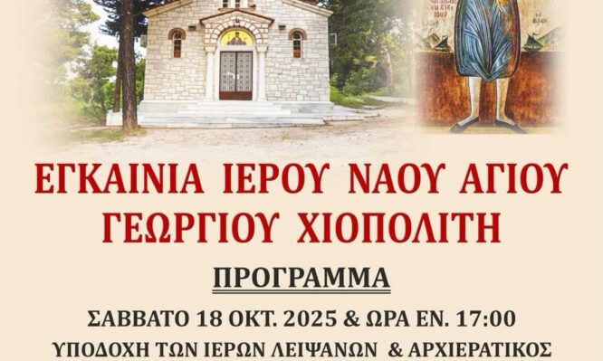 Πρόγραμμα Εγκαινίων Ιερού Παρεκκλησίου Αγ. Γεωργίου Χιοπολίτου Διονύσου Δόγμα 17 Οκτωβρίου 2025 13:45 Tags: ΜΗΤΡΟΠΟΛΗ ΚΗΦΙΣΙΑΣ
