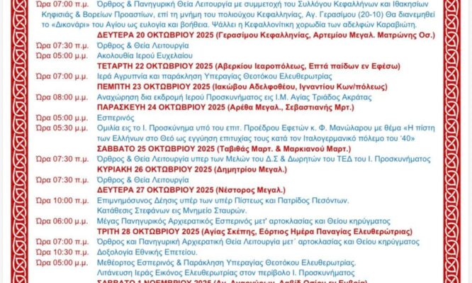 Πρόγραμμα εορταστικών εκδηλώσεων Παναγίας Ελευθερώτριας Κηφισιάς Δόγμα 21 Οκτωβρίου 2025 14:45 Screenshot Tags: ΜΗΤΡΟΠΟΛΗ ΚΗΦΙΣΙΑΣ