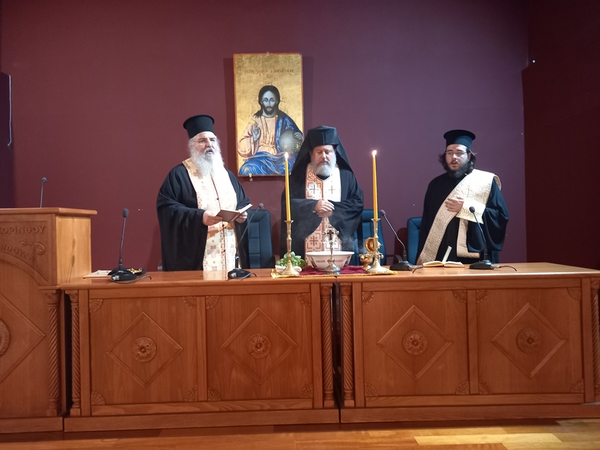 Η έναρξη του Προγράμματος, κατόπιν Σεπτής προσκλήσεως του Μητροπολίτου Κορίνθου κ. Διονυσίουπρος το Ι.Π.Ε., πραγματοποιήθηκε δια ζώσης στην Κροκίδειο Αίθουσα (πλησίον του Επισκοπείου) και τον Αγιασμό τέλεσανο ο Πανοσ. Αρχιμανδρίτης π. Θεολόγος Αλεξανδράκης, ο Πανοσ. Αρχιμ. π. Άνθιμος Παπαλεξόπουλος και ο Διάκονος της Ι. Μητροπόλεως μας π. Χρήστος Χίλιας.