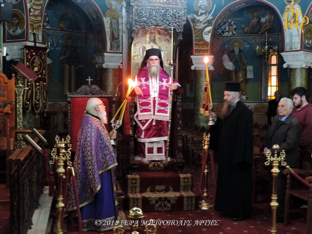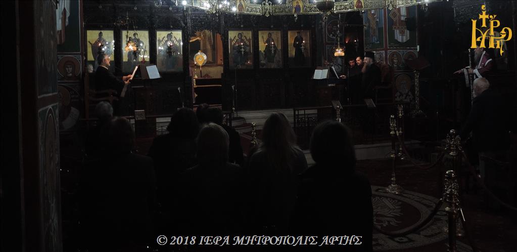 Την Τετάρτη 7 Μαρτίου 2018, το απόγευμα, ιερουργούντος του Σεβασμιωτάτου Μητροπολίτου Άρτης κ. Καλλινίκου, ετελέσθη η Θεία Λειτουργία των Προηγιασμένων Τιμίων Δώρων, στον Μητροπολιτικό Ιερό Ναό του Αγίου Δημητρίου Άρτης.