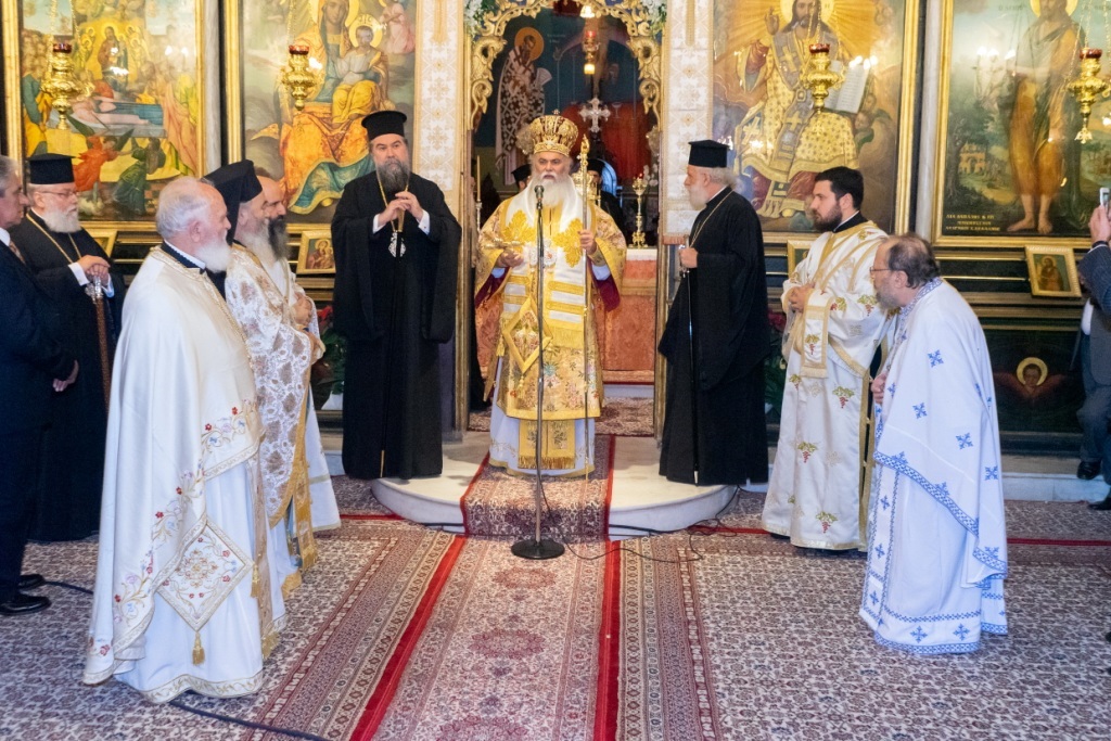 Μετά το πέρας της Θείας Λειτουργίας ο Σεβασμιώτατος μετέβη στο Επισκοπικό Μέγαρο, προκειμένου να υποδεχθεί στην αίθουσα του Θρόνου τους Αρχιερείς, τον Ιερό Κλήρο αλλά και τους εκατοντάδες ευλαβείς χριστιανούς που ανέμεναν καρτερικά για να του ευχηθούν από κοντά το «Άξιος!».