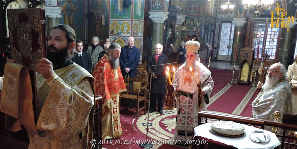 Μετά το πέρας της Θείας Λειτουργίας ο Σεβασμιώτατος Άρτης ετέλεσε την καθιερωμένη Δοξολογία παρουσία των Τοπικών Αρχών.