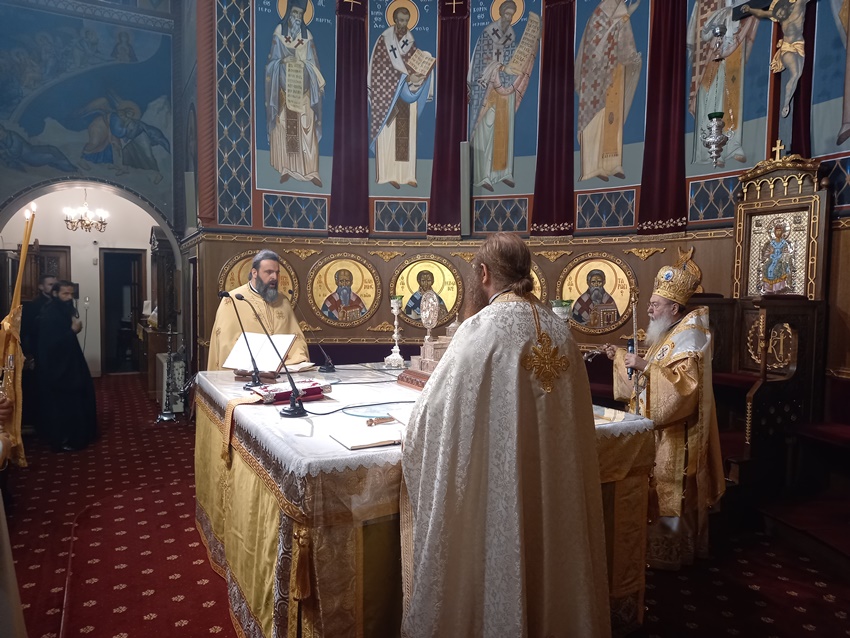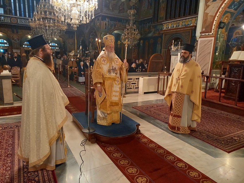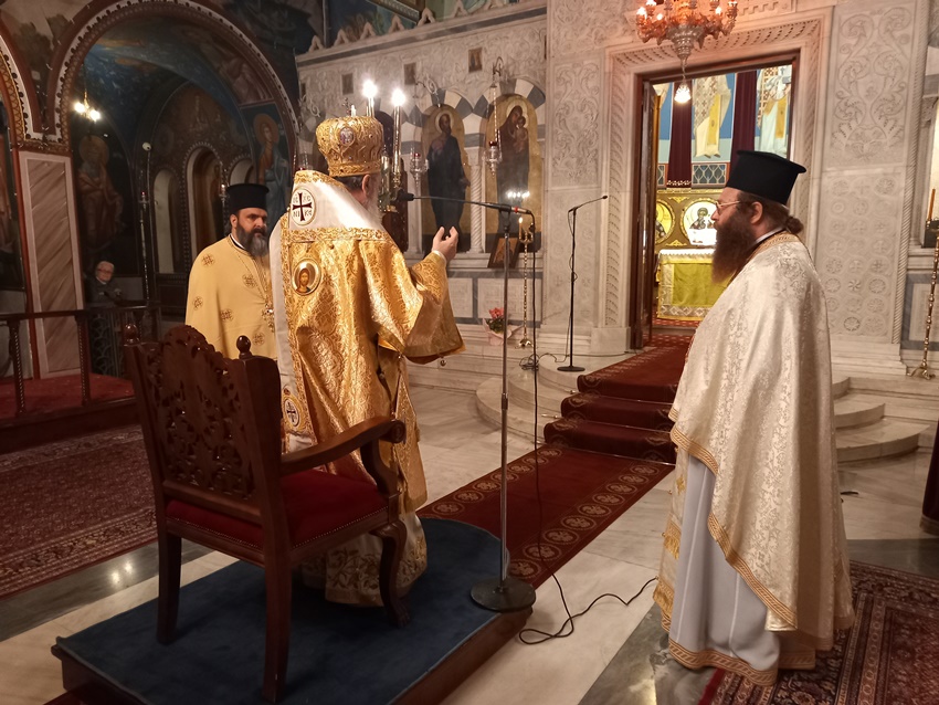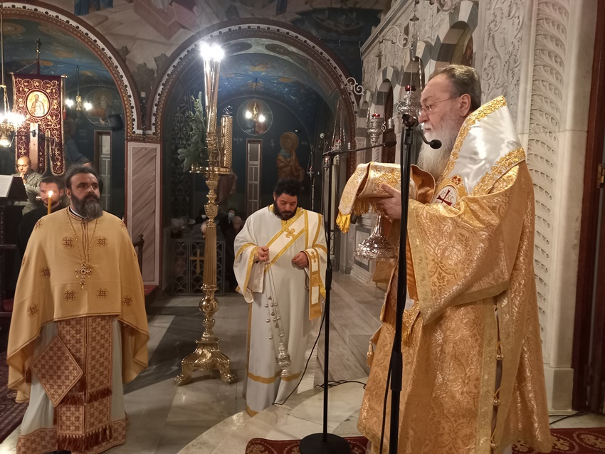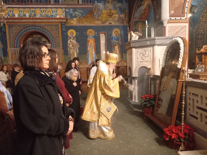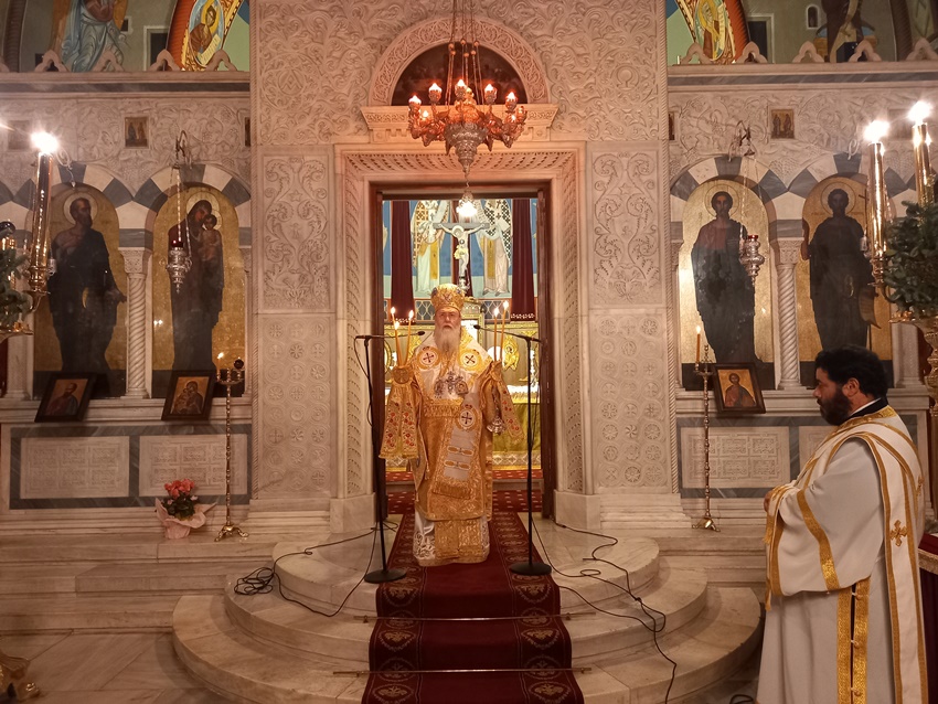 Το βράδυ της 31ης Δεκεμβρίου 2022, ο σεπτός Ποιμενάρχης μας, πλαισιούμενος από τους Ιερείς του Ι. Ναού, τέλεσε αρχικώς τον Μέγα Πανηγυρικό Εσπερινό και στην συνέχεια τον Όρθρο και την Θ. Λειτουργία του Μεγάλου Βασιλείου.