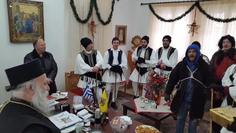 Τα κάλαντα της Πρωτοχρονιάς έψαλλαν σήμερα το πρωί σύλλογοι της περιοχής φορώντας παραδοσιακές φορεσιές αλλά και η μπάντα του στρατού, όπως προστάζει το έθιμο της πρωτοχρονιάς στη χώρα μας, στον μητροπολίτη Γρεβενών κ. Δαβίδ.