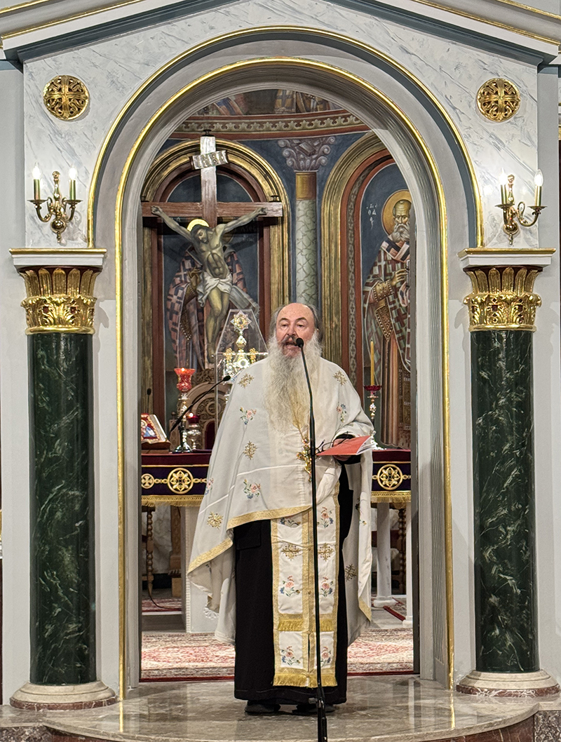 Το κήρυγμα του π. Λεωνίδα ξεκίνησε με αναφορά στην ιστορική καθιέρωση του Ακαθίστου Ύμνου, που ψάλθηκε για πρώτη φορά το 626 μ.Χ. στον ναό της Παναγίας των Βλαχερνών στην Κωνσταντινούπολη, τονίζοντας τη διαχρονικότητα των μηνυμάτων του. Παρά το πέρασμα των αιώνων, η τιμή, η αγάπη και η προσευχή των πιστών προς την Παναγία παραμένουν ζωντανές και ουσιαστικές, προσφέροντας νόημα στον καθημερινό αγώνα του ανθρώπου και κατευθύνοντάς τον προς την αιώνια ζωή.