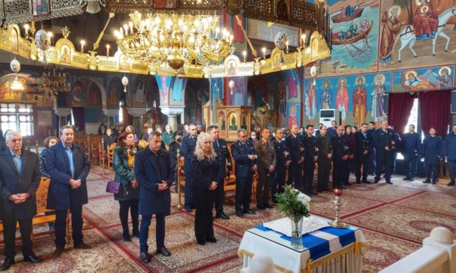 Ἐν συνεχείᾳ, προέστη τῆς ἐπιμνημοσύνου δεήσεως ὑπέρ ἀναπαύσεως τῶν ψυχῶν τῶν πεσόντων κατά τήν ἐκτέλεση τοῦ καθήκοντος Ἀστυνομικῶν καί ἀπό ἐκπρόσωπο τῆς Ἑνώσεως Ἀστυνομικῶν Ὑπαλλήλων Νομοῦ Ροδόπης ἀναγνώσθηκε κατάλογος πεσόντων Ἀστυνομικῶν. Κατόπιν τελέσθηκε τρισάγιο στόν τύμβο ἔξωθεν τοῦ Ἀστυνομικοῦ Μεγάρου Κομοτηνῆς.