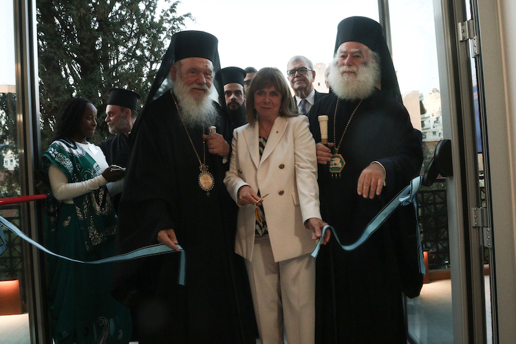 Ο Πατριάρχης Αλεξανδρείας και πάσης Αφρικής κ. Θεόδωρος υποδεχόταν και καλωσόριζε τους προσκεκλημένους, ενώ τέλεσε την ακολουθία του αγιασμού των εγκαινίων.