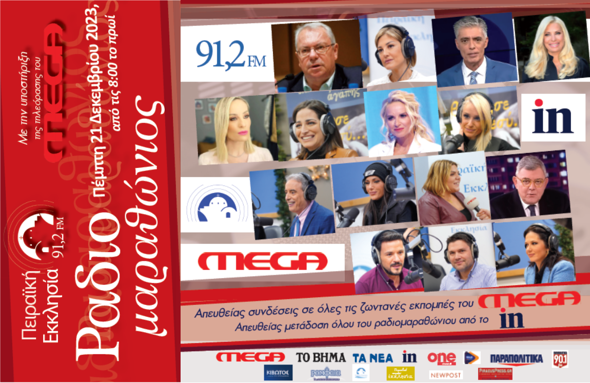 Ο Ραδιοφωνικός Σταθμός «Πειραϊκή Εκκλησία 91,2 fm», στηρίζει ΚΑΘΗΜΕΡΙΝΑ, μέσω ενός μεγάλου δικτύου εθελοντών, εμπράκτως την πολυπληθή κοινωνική ομάδα των απόρων και πονεμένων αδελφών μας. Για τον λόγο αυτό την Πέμπτη 21 Δεκεμβρίου 2023 από τις 08:00 έως τις 22:00 διοργανώνει Ραδιομαραθώνιο κατά της φτώχειας με την υποστήριξη της τηλεόρασης του MEGA.