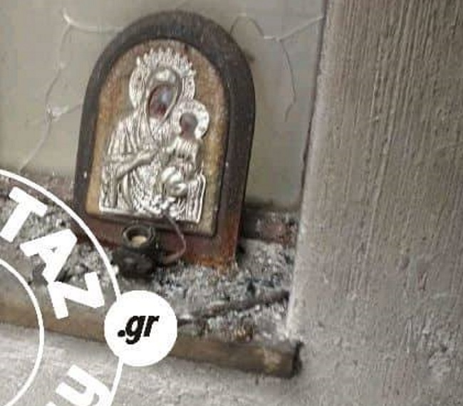 Ρίγος ένιωσαν το πρωί τα σωστικά συνεργεία και αστυνομικοί που βρέθηκαν στην περιοχή Σκουφέικα στη Ραφήνα. Μέσα σε ένα σπίτι που έγινε στάχτη από τις φλόγες αντίκρισαν στο περβάζι ενός παραθύρου να στέκει όρθια η εικόνα της Παναγίας.
