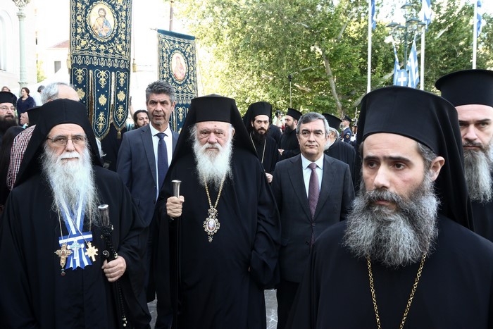 Χαρμόσυνα ηχούσαν οι καμπάνες, την ώρα που η ιερά εικόνα της Παναγίας αναχωρούε από τη Μητρόπολη Αθηνών συνοδευόμενη από τον Αρχιεπίσκοπο Αθηνών και πάσης Ελλάδος κ. Ιερώνυμο, τον Πρωτεπιστάτη του Αγίου Όρους, Γέροντα Χριστοφόρο Ιβηρίτη, την αντιπροσωπεία της Ιεράς Κοινότητας του Αγίου Όρους, καθώς και κληρικούς της Αρχιεπισκοπής Αθηνών, συγκινημένοι οι πιστοί έψελναν το “Άξιον εστίν ως αληθώς μακαρίζειν σε την Θεοτόκον”.