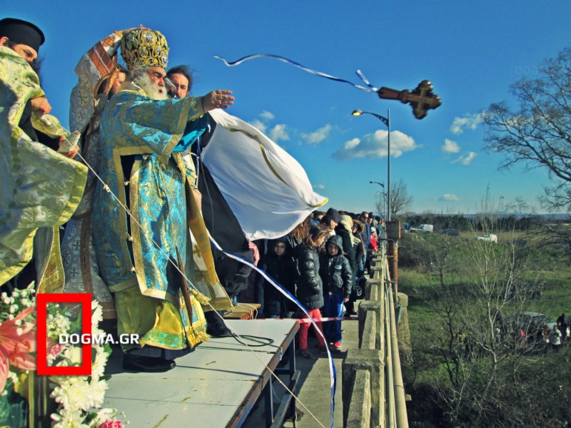 Στη συνέχεια, ο κ. Δημήτριος, κλήρος και πιστοί μετέβησαν στον Αξιό ποταμό. Στο σημείο μεταξύ Αξιούπολης και Πολυκάστρου, έγινε η ρίψη του σταυρού στα νερά του ποταμού. Παρά τις δυσμενείς καιρικές συνθήκες, η παρουσία του κόσμου ήταν αυξημένη.