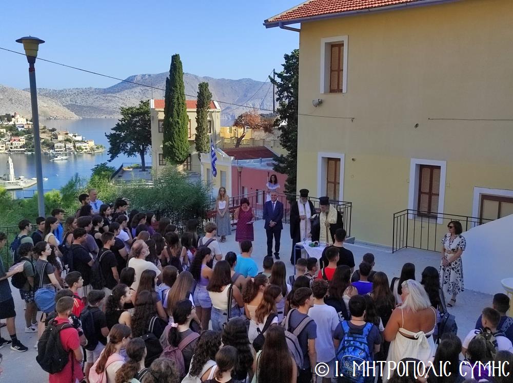 Τη Δευτέρα, 11η Σεπτεμβρίου 2023, πρώτη ἡμέρα τοῦ φετινοῦ σχολικοῦ ἔτους, ὁ Σεβασμιώτατος Μητροπολίτης Σύμης κ. Χρυσόστομος τέλεσε τόν καθιερωμένο ἁγιασμό, ἐπί τῇ ἐνάρξει τῶν μαθημάτων ἐν τοῖς Σχολείοις. Συμπαραστατούμενος ἀπό τόν π. Στέφανο Μακρῆ Γεν. Ἀρχιερατικό του Ἐπίτροπο, προέστη τῆς Ἀκολουθίας στό «Πανορμίτειο» Γυμνάσιο καί Λύκειο, τό ὁποῖο κατά τό λῆξαν σχολικό ἔτος συμπλήρωσε 100 χρόνια λειτουργίας.