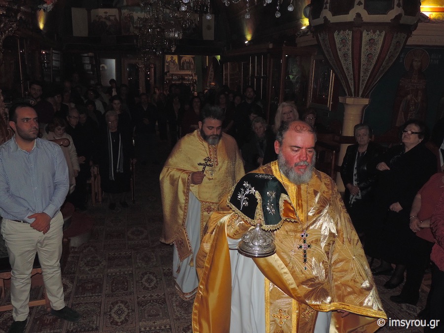 Ο Σεβασμιώτατος Μητροπολίτης Σύρου, Τήνου, Άνδρου, Κέας και Μήλου κ. Δωρόθεος Β΄, αφού κάλεσε το εκκλησίασμα να προσευχηθεί στη μνήμη των 28 θυμάτων του ναυαγίου του πλοίου “ΧΡΥΣΗ ΑΥΓΗ”, το οποίο συνέβη ακριβὠς πριν 33 χρόνια, ευχαρίστησε και συνεχάρη τον π. Ιερώνυμο Νικολόπουλο και επήνεσε τα περικοσμούντα αυτόν χαρίσματα, τον Προϊστάμενο του Ναοῦ, π.Πέτρο Μαραγκό και τους παρισταμένους, ιδιαίτερα δε τους Νέους για τη συγκινητική παρουσία τους.