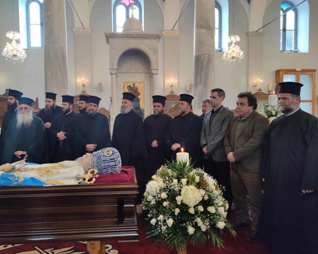 Σήμερα Πέμπτη και ώρα 7 έως 10.30 π.μ. θα τελεσθή ο Όρθρος και Αρχιερατική θεία Λειτουργία υπό του Σεβασμιωτάτου Μητροπολίτου μας κ. ΑΘΑΝΑΣΙΟΥ. Ώρα 1 μ.μ. θα τελεσθή η Εξόδιος ακολουθία υπό του Μακαριωτάτου Αρχιεπισκόπου Αθηνών και πάσης Ελλάδος κ.κ. ΙΕΡΩΝΥΜΟΥ με την συμμετοχήν πλειάδος Αρχιερέων. Μετά το πέρας της Εξοδίου ακολουθίας θα γίνει ο ενταφιασμός της σορού εις Α’ Κοιμητήριο του Πύργου, παραπλεύρως του Μακαριστού προκατόχου του αλλά και πνευματικού του Πατρός Γερμανού (Γκούμα).