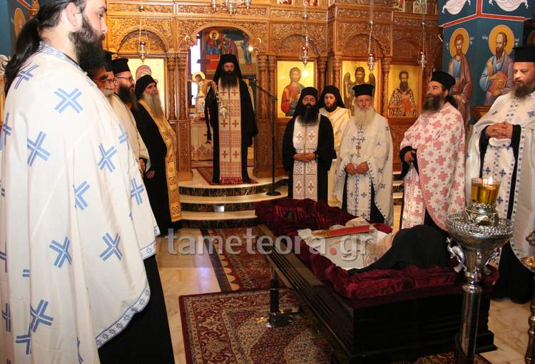 Αμέσως μετά τελέστηκε τρισάγιο στο Καθολικό της Ιεράς Μονής, όπου και έχει τεθεί σε προσκύνημα.