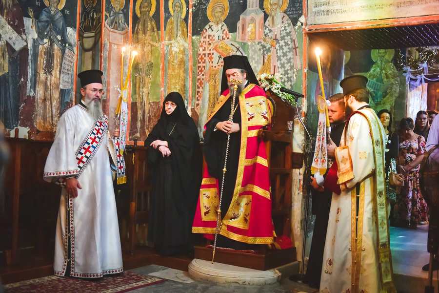 Προ της απολύσεως της θ. Μυσταγωγίας, που τελέσθηκε στην ως είρηται εορτάζουσα ιστορική ιερά Μονή των Σερρών, την έκπαλαι στεφανωμένη με βασιλικές και πατριαρχικές προνομίες, ιερουργήσαντος του Σεβ. Μητροπολίτου Σερρών και Νιγρίτης κ. Θεολόγου, με την συμπροσευχητική παρουσία των Βουλευτών του Νομού Σερρών κ. κ. Αναστασίου Χατζηβασιλείου, Φωτεινής Αραμπατζή και Θεοφίλου Λεονταρίδη, του Αντιπεριφερειάρχου Σερρών κ. Παναγιώτου Σπυρόπουλου, της Δημάρχου Σερραίων κ. Βαρβάρας Μητλιάγκα, εκπροσώπων των Στρατιωτικών και Αστυνομικών Αρχών του τόπου και της Πυροσβεστικής Υπηρεσίας Σερρών, καθώς και πλήθους φιλέορτων χριστιανών, ευλογήθηκαν τα εόρτια κόλλυβα του Αγίου και ακολούθως τελέσθηκε, κατά το έθος, η ακολουθία του Αγιασμού στην φιάλη της ιεράς Μονής.
