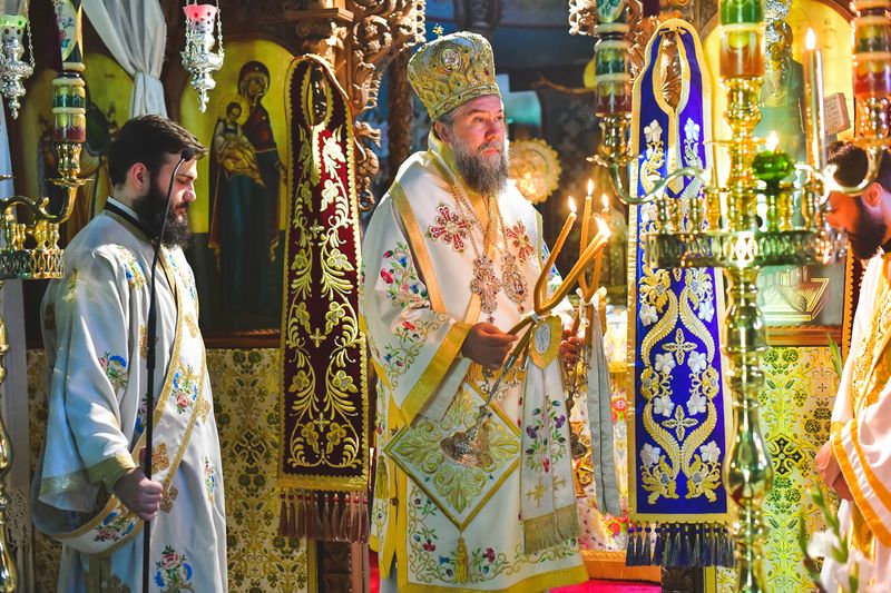 Ακολούθως, στον προαύλιο χώρο της ιεράς Μονής, τελέσθηκε η ακολουθία του Αγιασμού, στο τέλος της οποίας, ο Σεβ. Ποιμενάρχης της Σερραϊκής Εκκλησίας κ. Θεολόγος, ομίλησε με δυνατό, αφυπνιστικό και πύρινο τρόπο στο πυκνότατο εκκλησίασμα, εμπνεόμενος από τον πάντοτε επίκαιρο λόγο του Προφ. Ηλιού, όπως αυτός είναι αποθησαυρισμένος στο παλαιοδιαθηκικό ανάγνωσμα: «Ἕως πότε ὑμεῖς χωλανεῖτε ἐπ᾿ ἀμφοτέραις ταῖς ἰγνύαις; εἰ ἔστι Κύριος ὁ Θεός, πορεύεσθε ὀπίσω αὐτοῦ· εἰ δὲ ὁ Βάαλ, πορεύεσθε ὀπίσω αὐτοῦ» (Βασ. Γ’ 18,21), υπογραμμίζοντας μεταξύ άλλων και τα εξής: