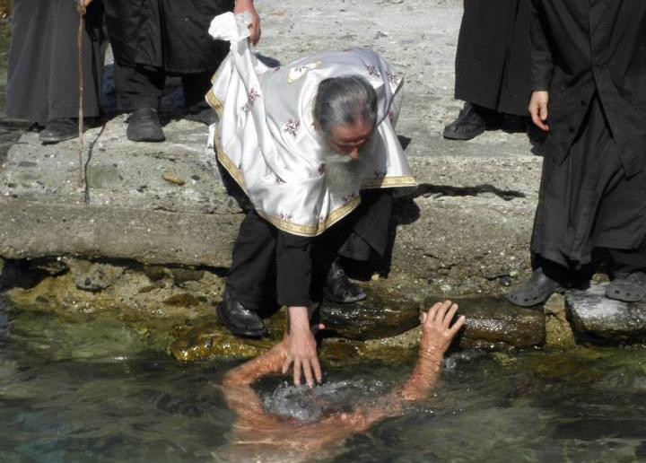 Σπάνιες εικόνες από την βάπτιση ενός ενήλικου άνδρα στη θάλασσα του Αγίου Όρους δόθηκαν στην δημοσιότητα μέσω ενός αγιορείτικου γκρούπ στο facebook.