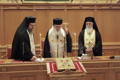 Μετά την προσευχή ανεγνώσθη ο Κατάλογος των συμμετεχόντων Ιεραρχών και διεπιστώθη απαρτία. Κατόπιν επικυρώθηκαν τα Πρακτικά της χθεσινής Συνεδρίας.